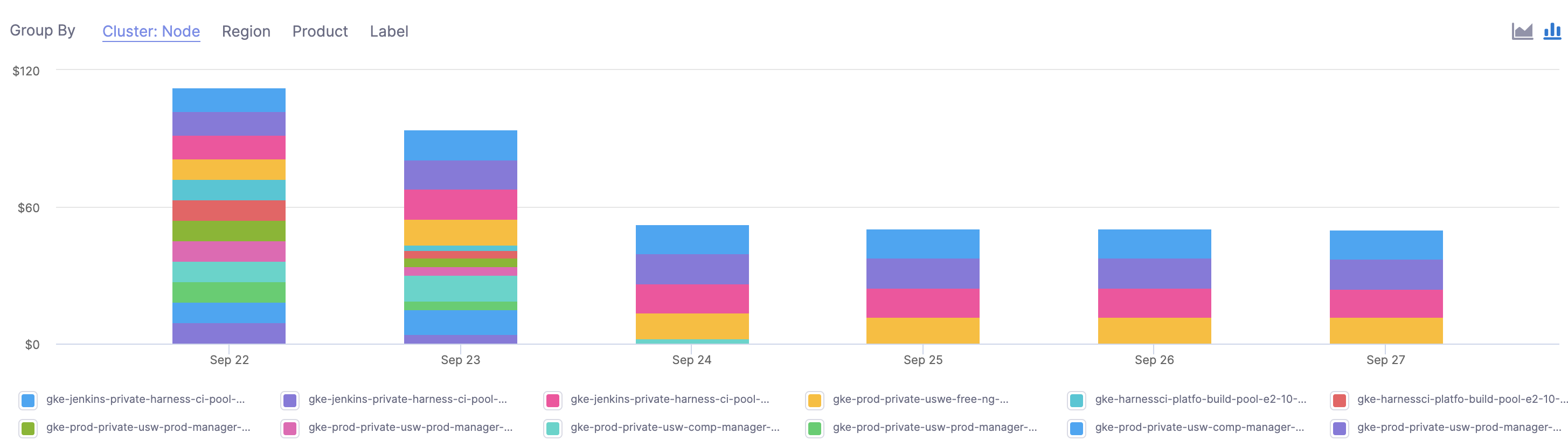 ☆ NOTE — Typically nodes are the same size. If they are running for a full day and are the same size, the cost will be the same.
