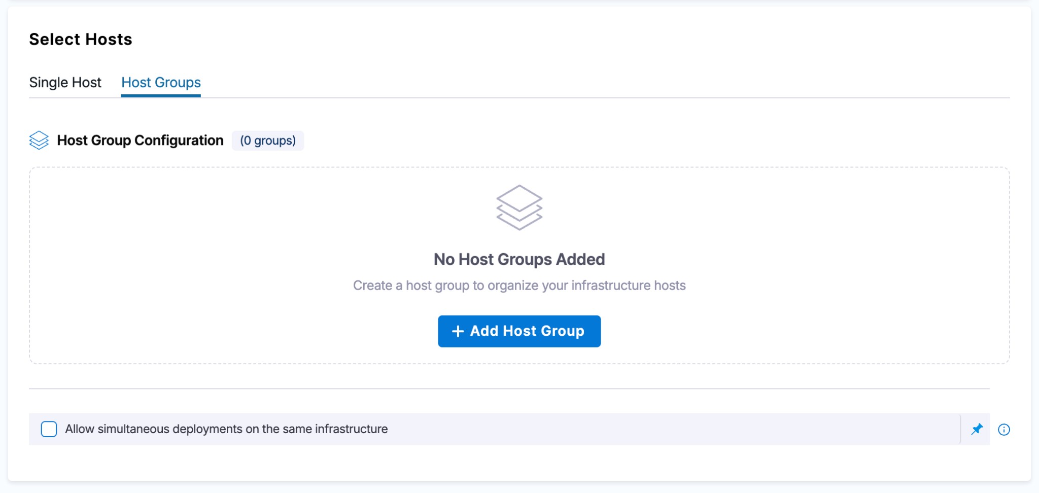 The Physical Data Center (PDC) infrastructure type targets Windows servers that are not managed through Azure or AWS connectors. When you select PDC as the infrastructure type, Harness presents two host configuration modes: Single Host and Host Groups.