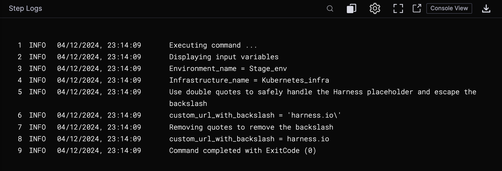 For example, you could use the Shell Script step to capture instance IDs from the deployment environment and then pass those IDs downstream to future steps or stages in the same pipeline.