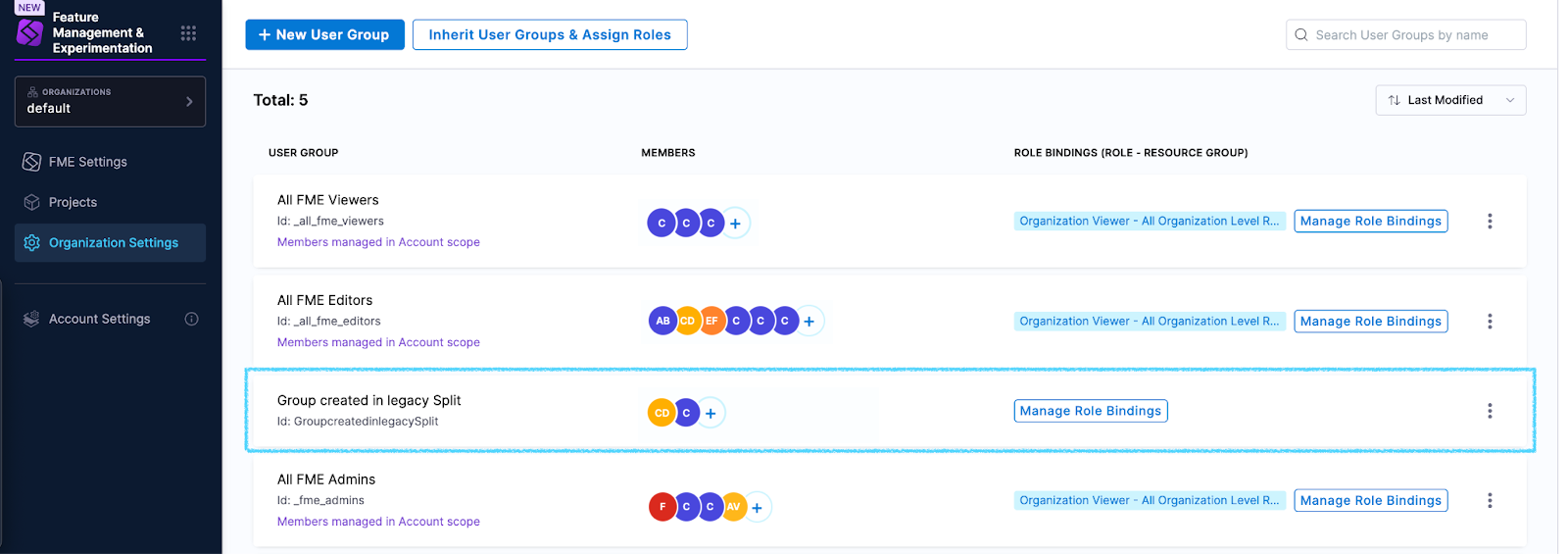 When your account was migrated to Harness, the migration script created new Harness FME user groups and assigned role bindings to replicate your legacy Split settings.