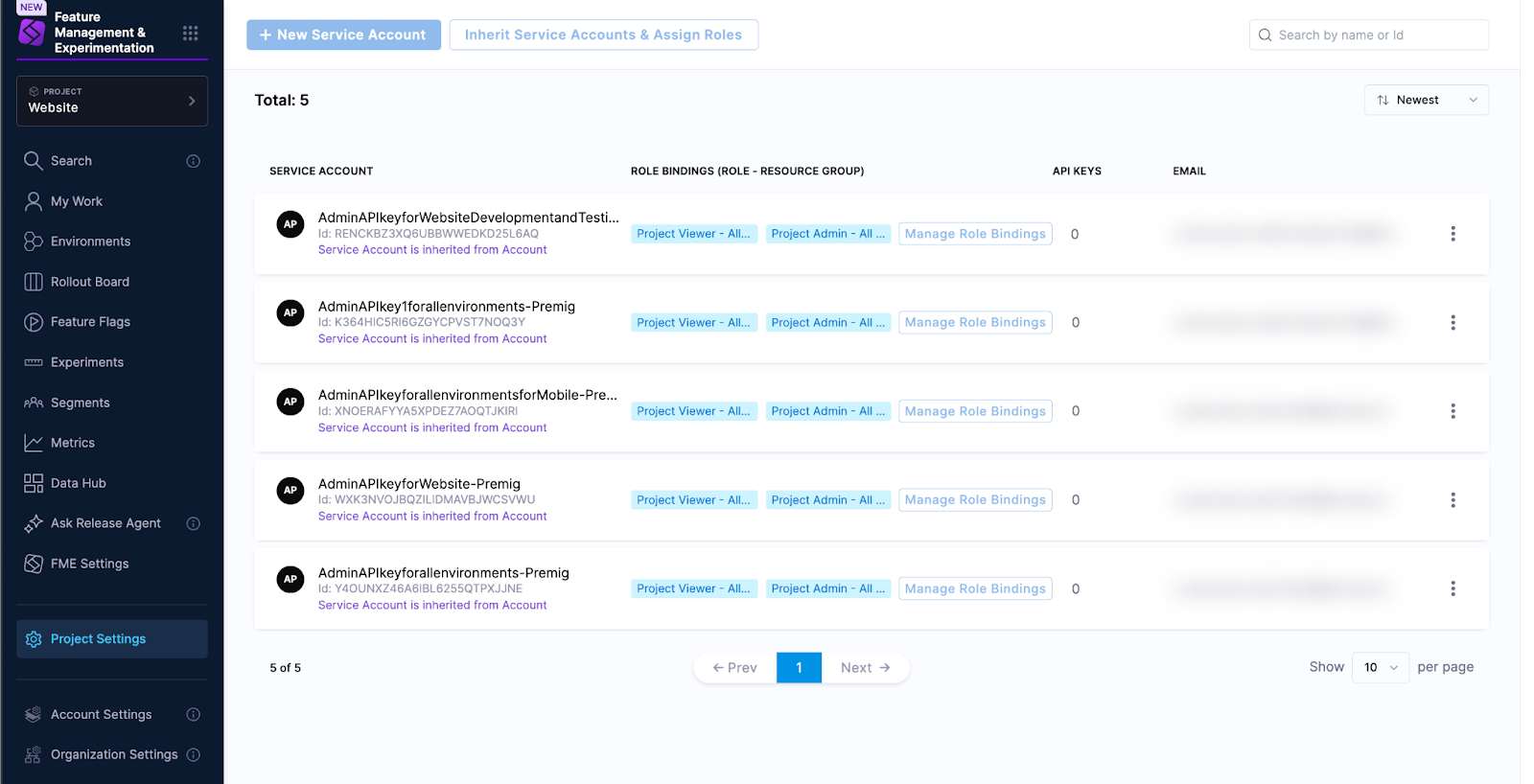 4. Look for a service account that matches the name of your legacy Split Admin API key (with spaces removed).