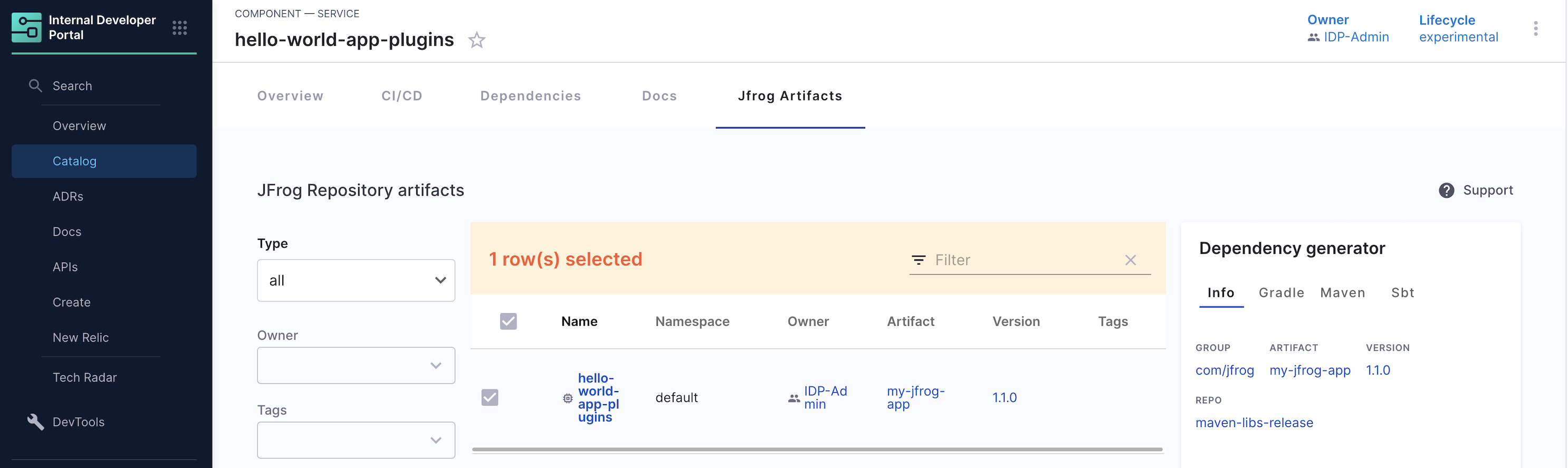• Artifact details are correlated to IDP entities using an annotation added in the entity's catalog-info.yaml file.