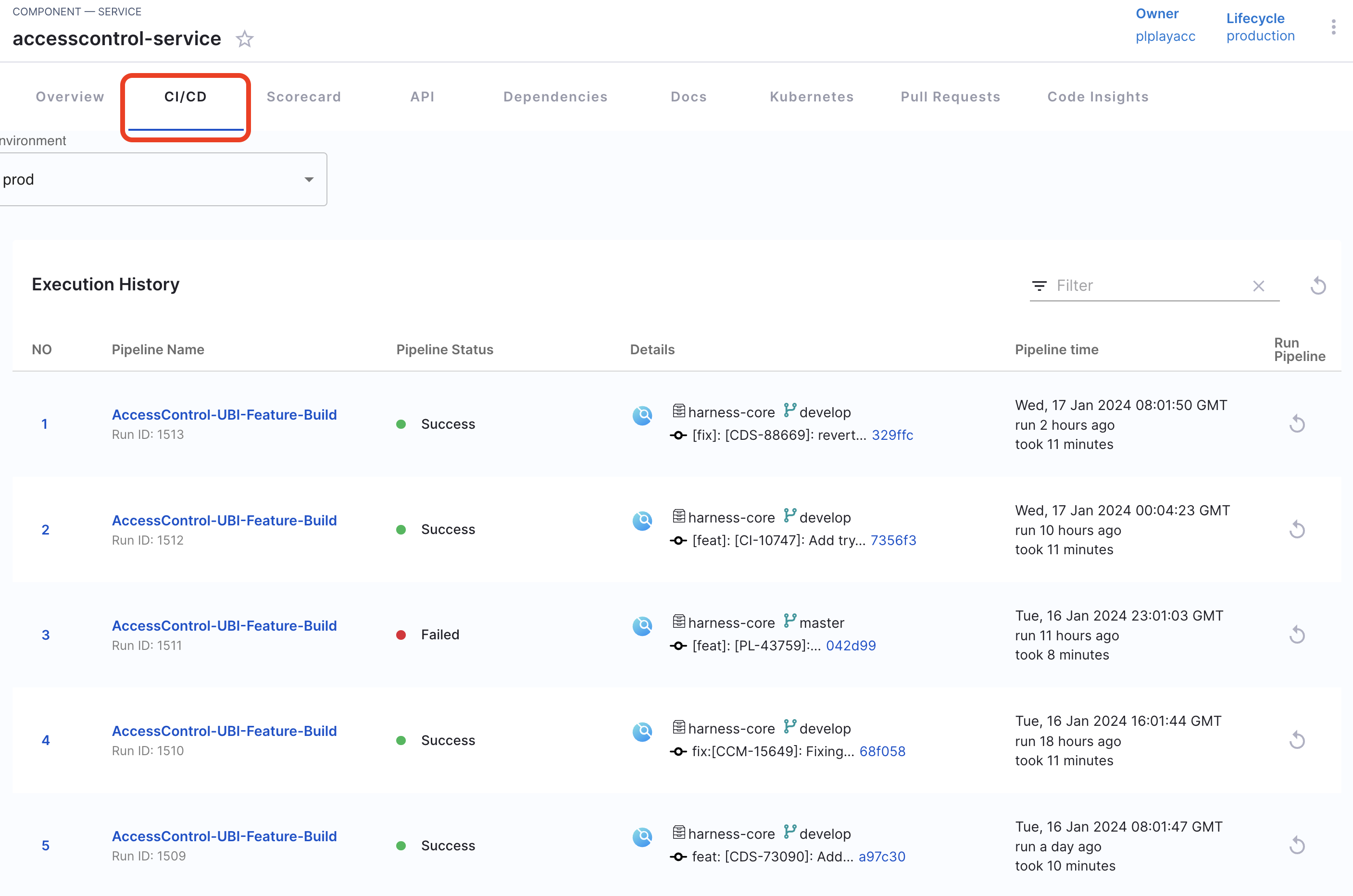 • Tab: Here's an example EntityHarnessCiCdContent of Harness CI/CD tab.