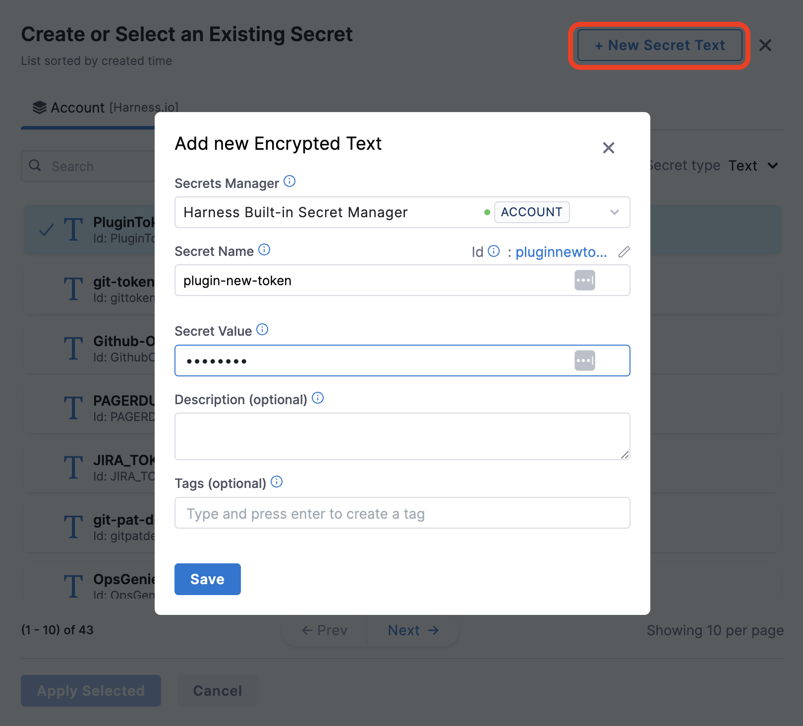 3. Now in the above proxy authorization is added as a variable SECRET_TOKEN and the secret is stored in Harness Secret manager.