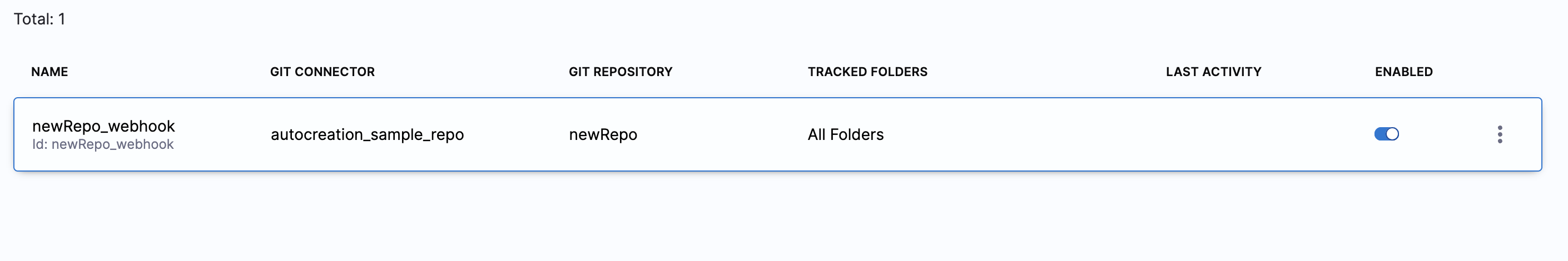 • If the connector has sufficient permissions (e.g., admin:repo_hook for GitHub), the webhook is created.