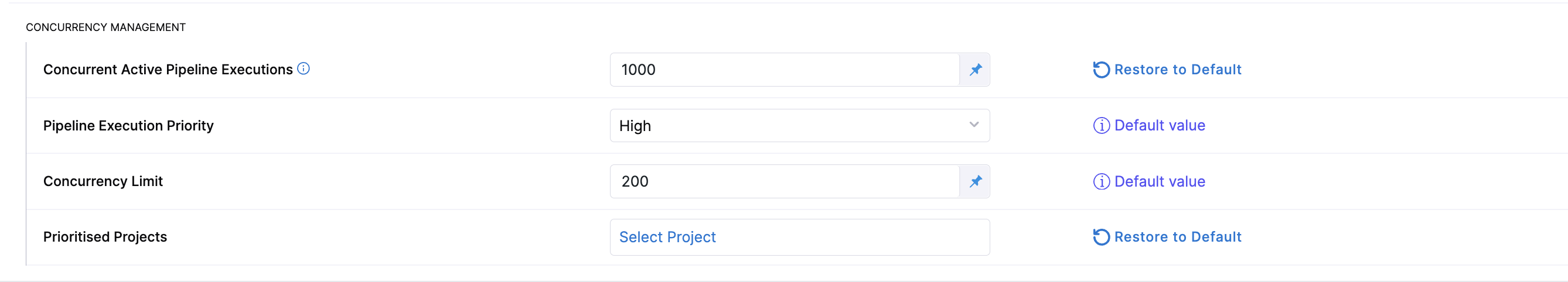 You can take fine-grained control of how many pipelines run concurrently in each of your projects. By splitting your account-wide concurrency limit into a High-Priority and Low-Priority partition, you guarantee reserved execution slots for critical projects while preventing any one project from consuming all available capacity.