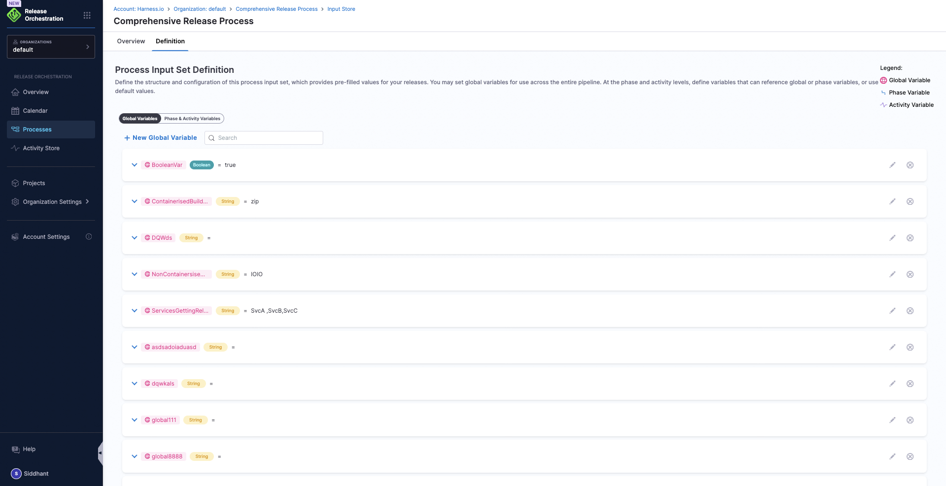 Global Variables: Process-level variables that apply across all phases and activities.