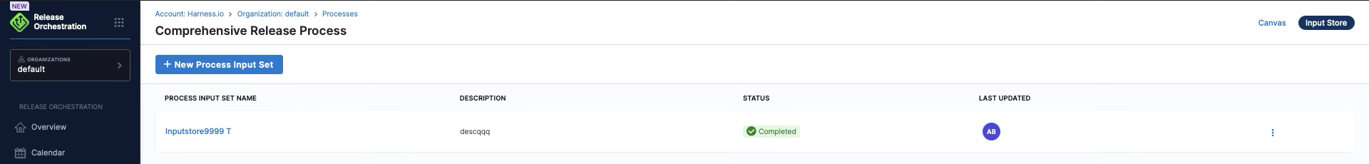 The Input Store is a collection of inputs for every process. There can be different sets of inputs for the same process, allowing you to execute the release multiple times with different sets of inputs. The Input Store holds the concrete values for: