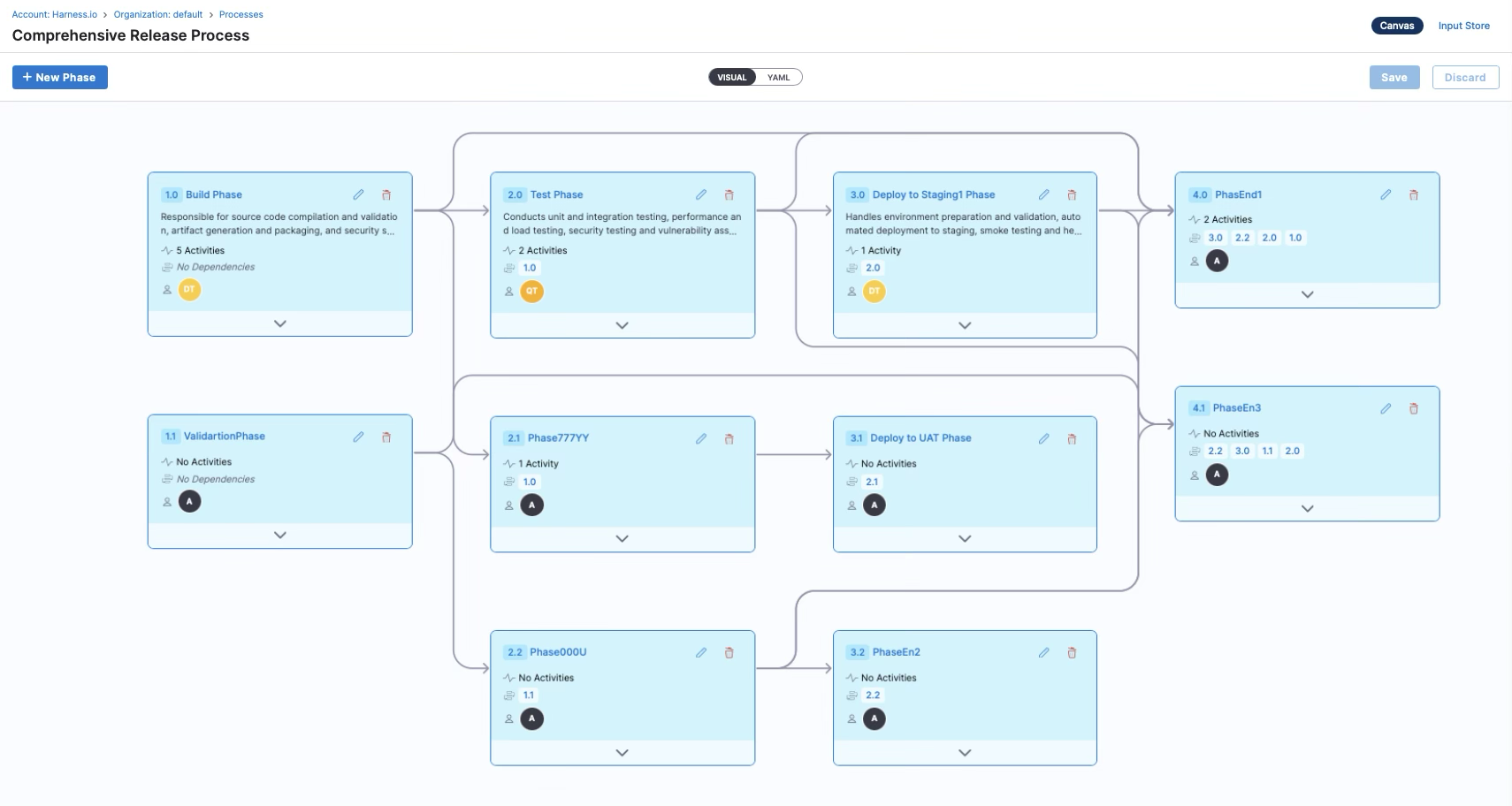 The activity store contains a collection of reusable activities with inputs and outputs encapsulating the pipelines. Harness Release Orchestration provides activity stores where all the reusable activities pertaining to different processes can be modeled and selected. Activities can be reused across different processes, promoting consistency and reducing duplication.