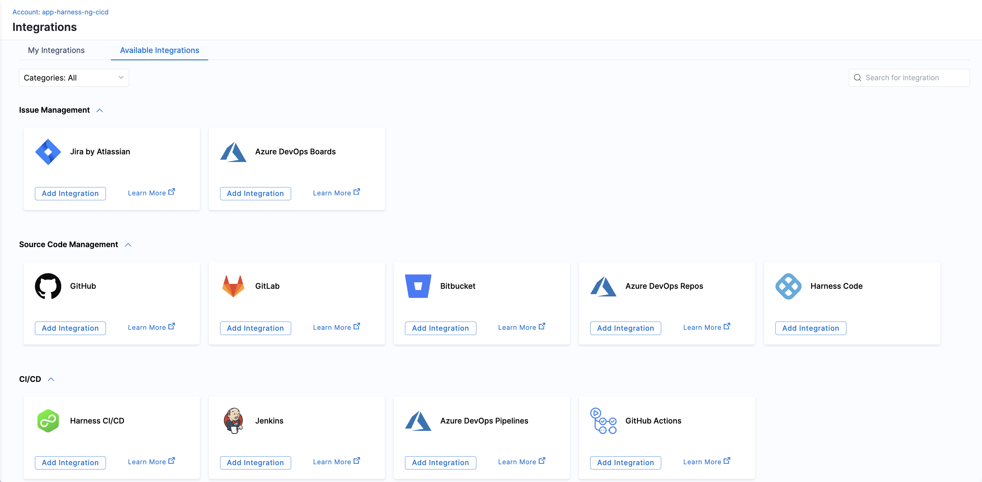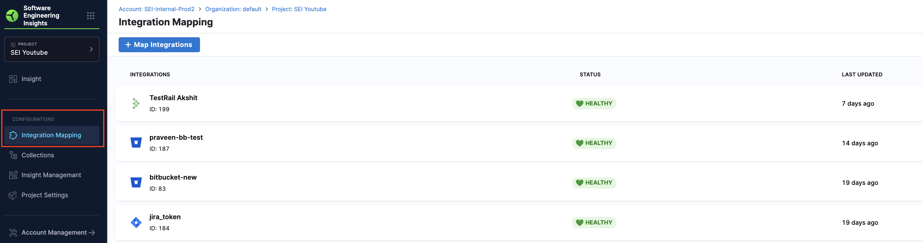To map integrations, go to Integration Mapping in your Harness project within the SEI 2.0 module.