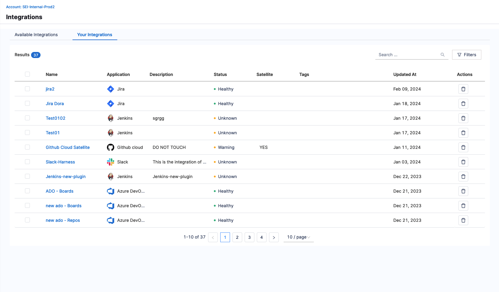 Interactions with third-party systems on Harness SEI are managed through the SEI 2.0 integrations. For example, an SEI GitHub integration authenticates through a GitHub account to collect data about activity in your teams' GitHub repositories (such as PRs, commits, and merges).
